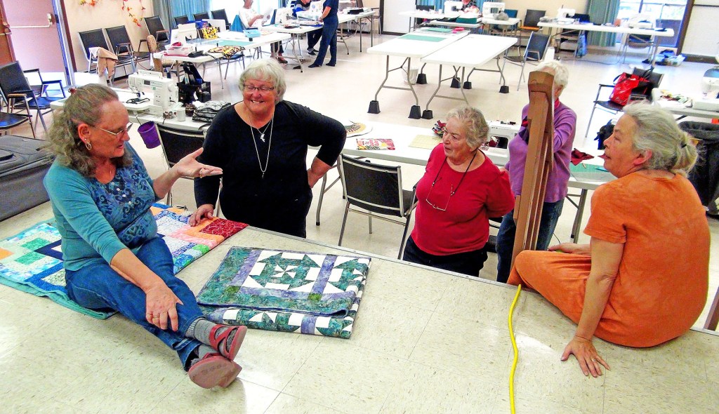 Though it started with a rather formal Constitution and Bylaws, its essence was a “hobby group” (Judy Wright) – women interested in learning to quilt, getting together to share how to make a quilt – plain or fancy. The quilting space soon moved from the local library to the Seniors’ Hall, where there were tables and space to set up (and store) the hand-quilting frames.