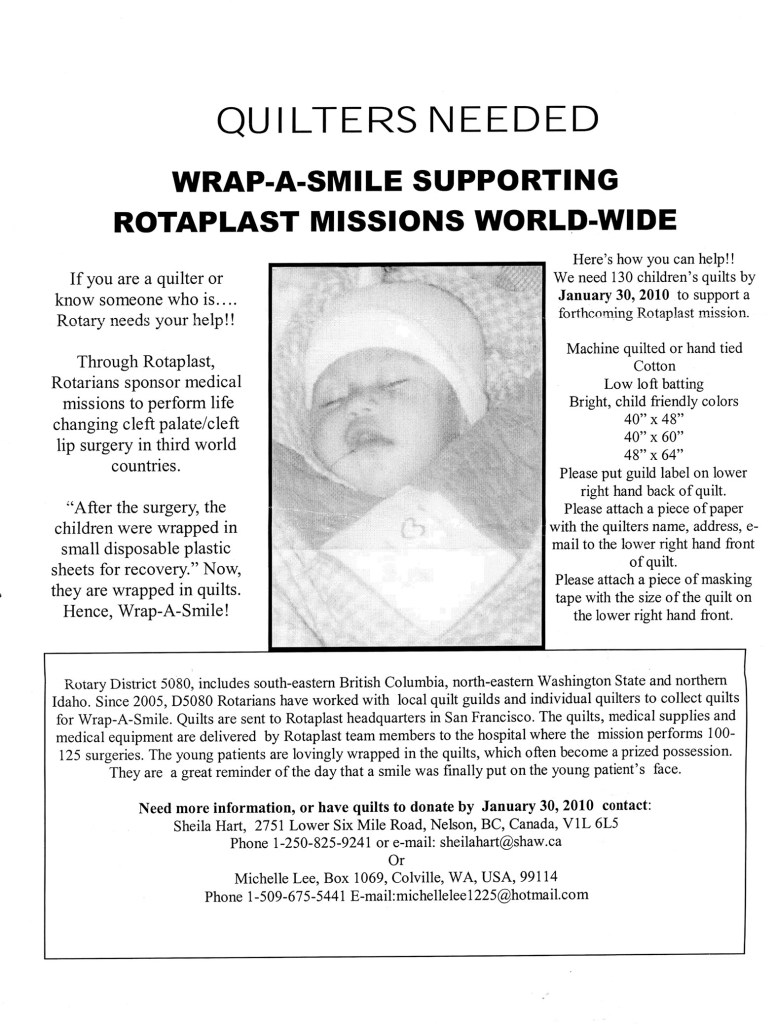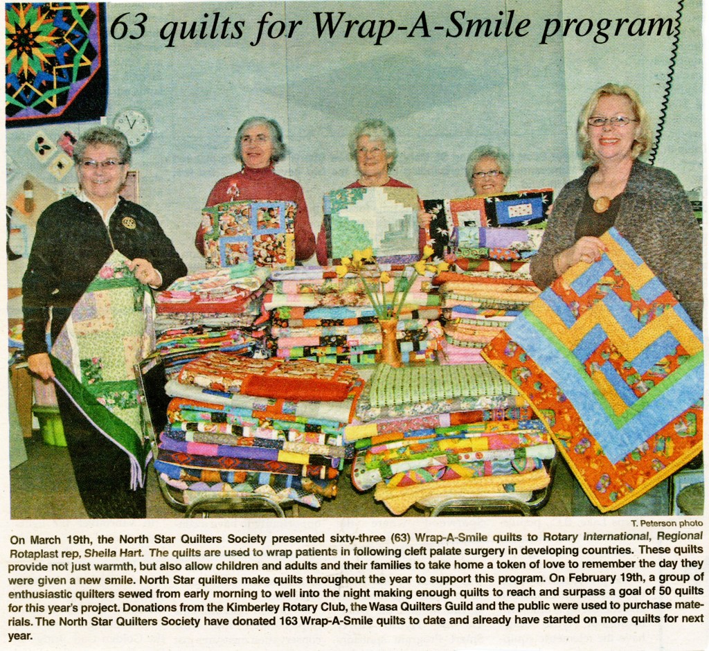 – 27 quilts to Rotoplast’s “Wrap a Smile” campaign