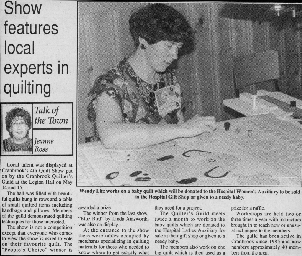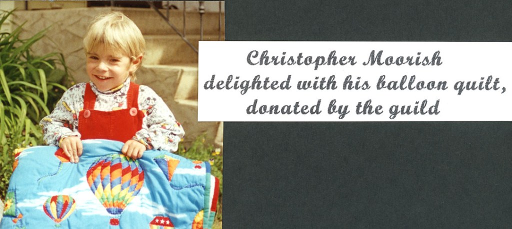 The quilts were given out by hospital staff and through Social Services. The guild liked to have one or two “in reserve” for a needy baby or child.