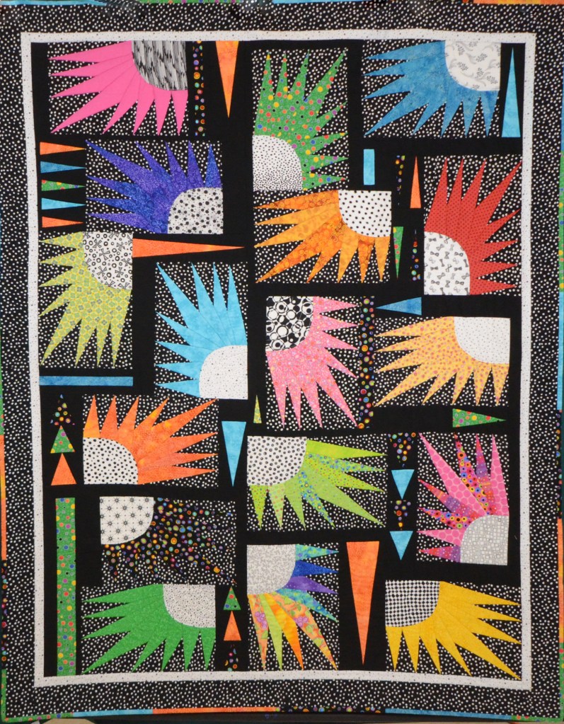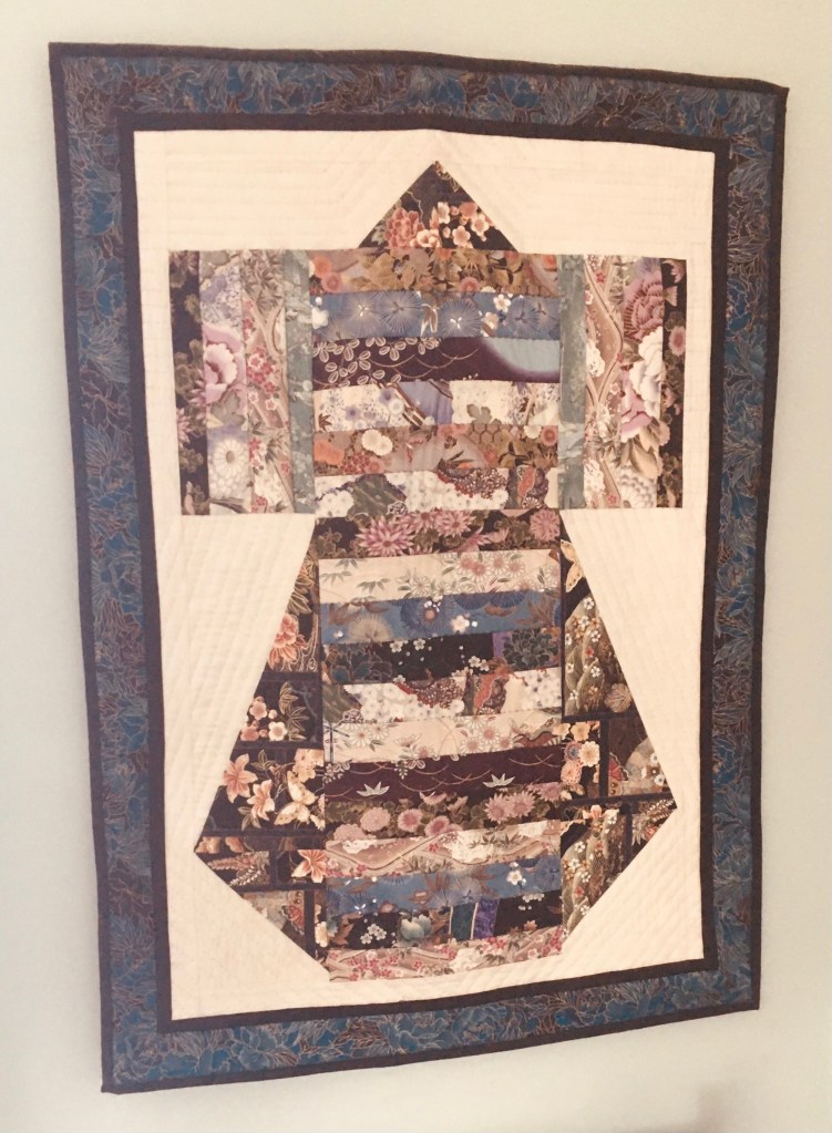One of the “jokes” about quilting is the absurdity of cutting up gorgeous fabric into small pieces and sewing them back together. However, this is the process of creating a quilt top. To make a quilt top, you take yardage of complementary fabrics, cut shapes (squares, rectangles, even circles or curved pieces), and then sew the pieces together to create new patterns. Once a patterned “top” is made, you make a quilt sandwich of three layers: the top, batting, and backing. The sandwich is then quilted either by hand or by machine. After the quilting is done, the edges are usually finished with a binding or a facing. You can be a “traditionalist” in your approach or a “modernist” and make bed quilts or art pieces. There isn’t a limit to how you use quilting as a creative process. It truly is like being a child, experiencing the joy of a box of 64 Crayola crayons and a blank canvas to colour.