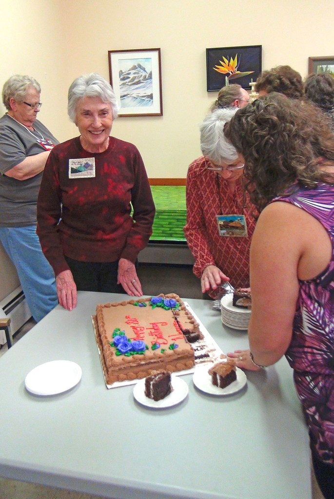Noreen Aikman with her 80th Birthday Cake at the Seniors Hall.